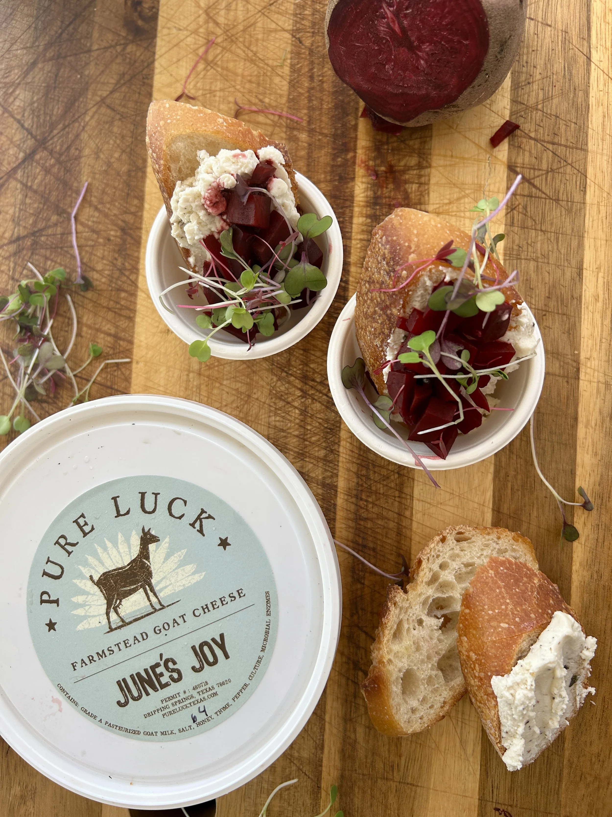 1/2 cup June’s Joy goat cheese (@purelucktexas)